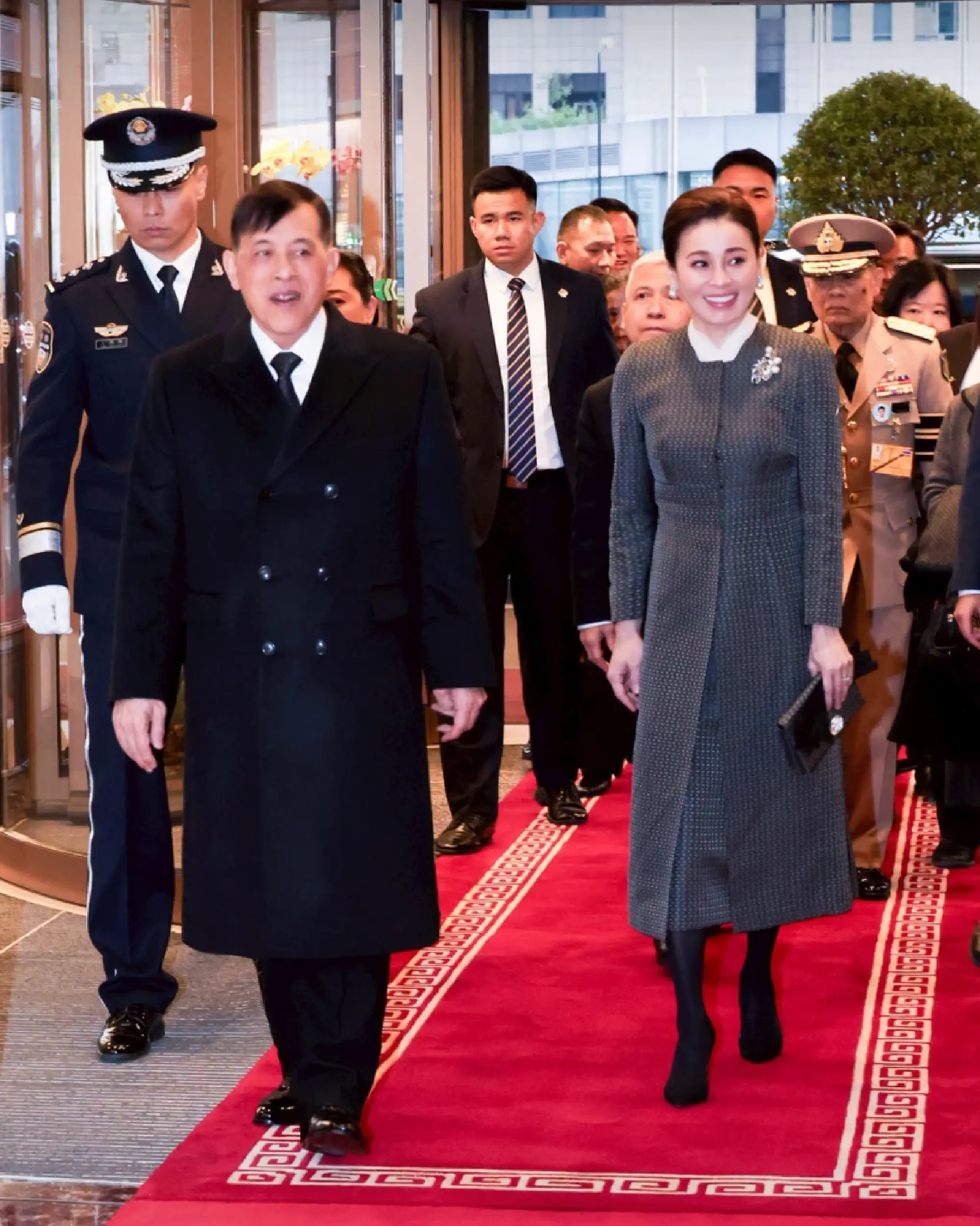 Vid detta tillfälle beviljade Hans Majestät nådigt Chatchai, Thailands ambassadör i Folkrepubliken Kina, tillstånd att närvara vid Deras Majestäter och respektfullt presentera Hong Lei, biträdande utrikesminister och generaldirektör för Folkrepubliken Kinas protokollavdelning, som respektfullt inbjöd Deras Majestäter att stiga av flygplanet.