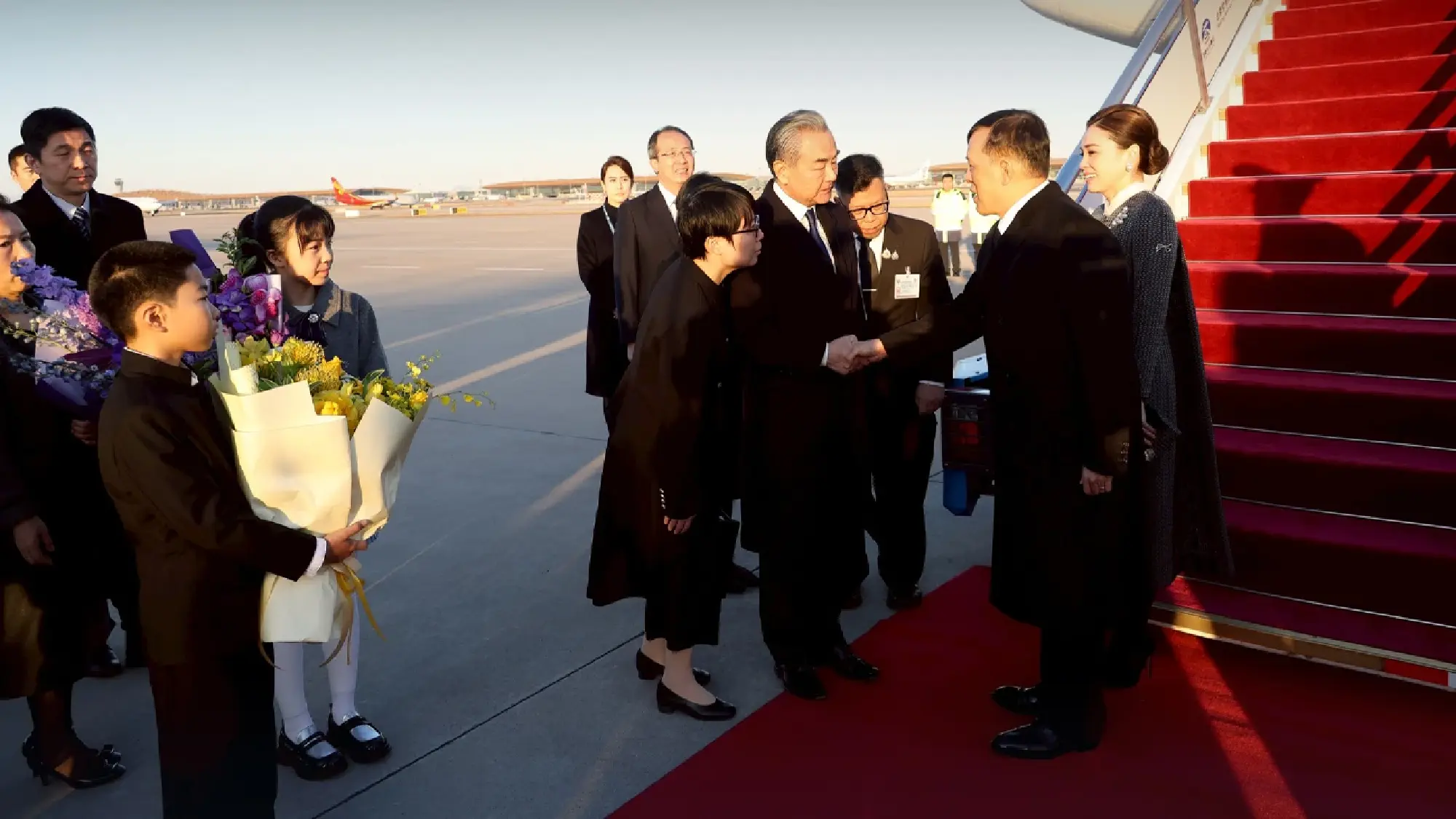 Wang Yi, medlem av den politiska byrån, chef för kontoret för Kinas kommunistiska partis centralkommission för utrikesfrågor (motsvarande vice premiärminister) och Folkrepubliken Kinas utrikesminister, tog emot kungaparet för att välkomna dem. En kinesisk pojke överlämnade en blombukett till Hans Majestät Kungen, och en kinesisk flicka överlämnade en bukett till Hennes Majestät Drottningen.