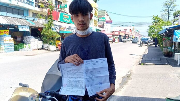 Incidenten ägde rum den 23 oktober i Soi Boa Yang i Nongkham-distriktet Sri Racha. Offret, Weerapat Ruangkarin, 22, visade ett rött märke runt halsen och sa att han blev kvävd av en lågt hängande tråd.