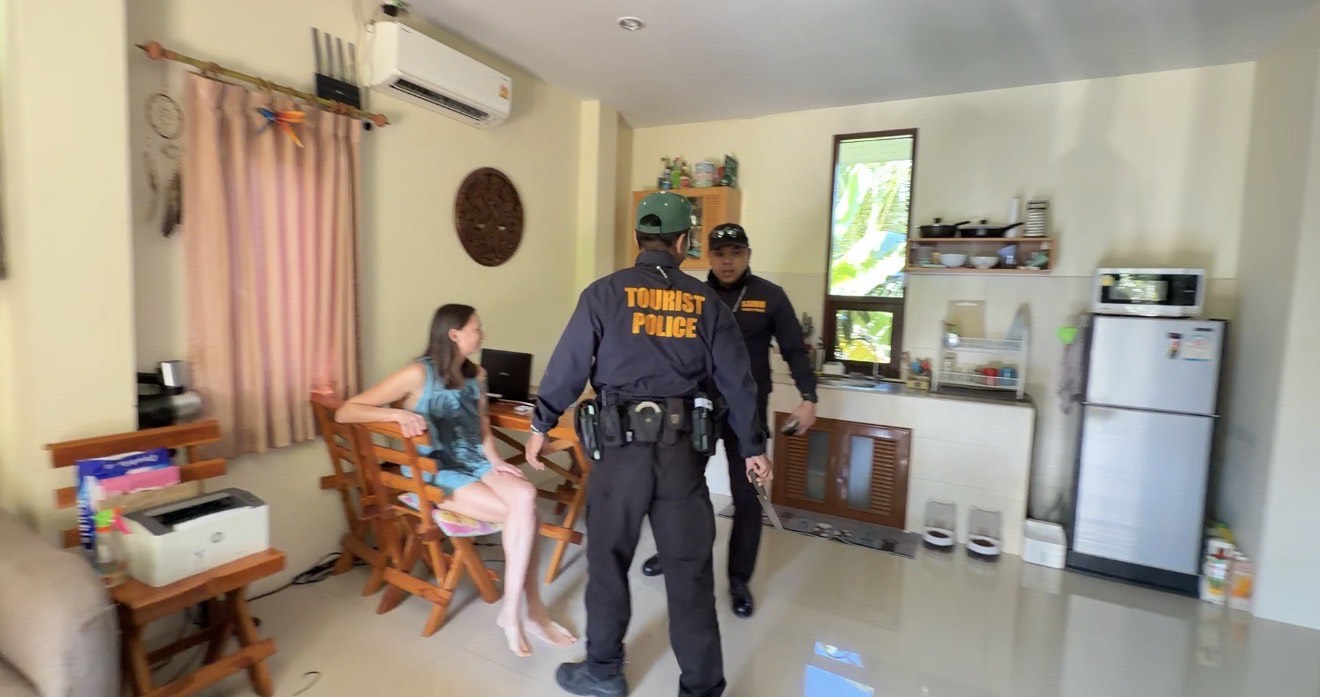 Polisen agerade efter att lokala invånare klagat på att utlänningar påstås ha drivit en uthyrningsverksamhet för fordon utan tillstånd. Polisen besökte ett hus i byn Sri Thanu den 1 december och hittade Oleg, en 51-årig rysk medborgare, sittande under huset medan hans fru, Ekaterina, 38, använde en bärbar dator som visade en bokningskalender för gästbokningar, enligt polisen på Koh Phangan.